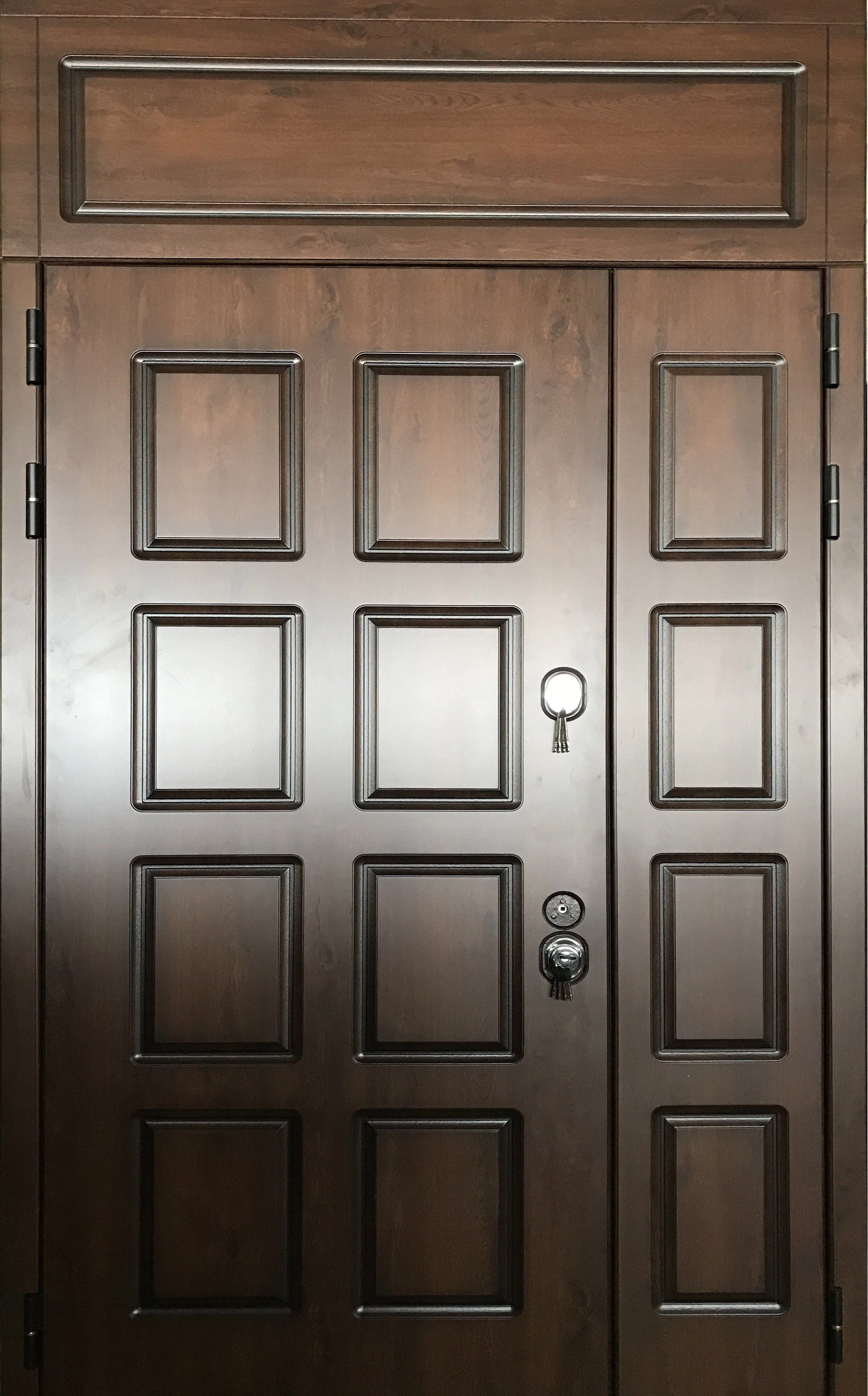 Хорошие атмосферостойкие свойства корабельной фанеры позволяют использовать ее для отделки металлических дверей. Внешне корабельная фанера ничуть не уступает накладкам из массива, но, в отличии от них, более легкая, долговечная, устойчива к перепадам влажности и температуры, не рассыхается, менее подвержена деформации и не имеет так называемого «эффекта памяти», то есть, в отличии от накладок из массива, не старается «вернуться» в исходное положение. По стоимости двери из корабельной фанеры находятся в одном ценовом диапазоне с дверями, сделанными с использованием массива. Ввиду высокой плотности материала, фрезеровка выполняется специальными фрезами, что дает возможность изготовить дверь под любой интерьер и по любому эскизу. А вот вручную нанести фрезеровку на корабельную фанеру не получится – таковы особенности этого материала.