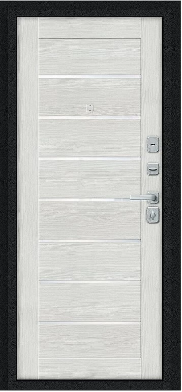 Дверь Браво Техно/BChrome Букле черное/Bianco Melinga - недорогая эконом класса по цене 4 571 руб., отлично подходит для временной установки в квартиру под сдачу, строительство, ремонт. Не смотря стоимость, модель хорошего качества.