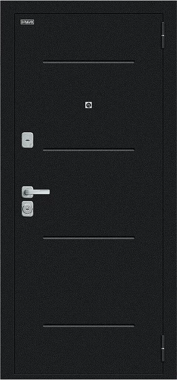 Надежная входная Дверь Браво Техно/BChrome Букле черное/Wenge Melinga премиум класса по цене 35 071 руб. Большая толщина стали защитит от проникновения в ваш дом, квартиру или коттедж. Используется очень качественная фурнитура: замки, цилиндры, ручки, защелки. Покрытие и отделка двери изготовлено под внимательным контролем производителя. Дверь имеет долгий срок службы и гарантию.