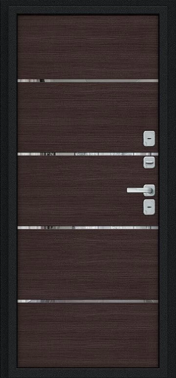 Надежная входная Дверь Браво Thermo Лайн/BChrome Букле черное/Wenge Melinga премиум класса по цене 47 271 руб. Большая толщина стали защитит от проникновения в ваш дом, квартиру или коттедж. Используется очень качественная фурнитура: замки, цилиндры, ручки, защелки. Покрытие и отделка двери изготовлено под внимательным контролем производителя. Дверь имеет долгий срок службы и гарантию.