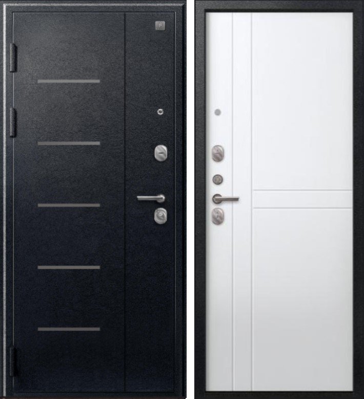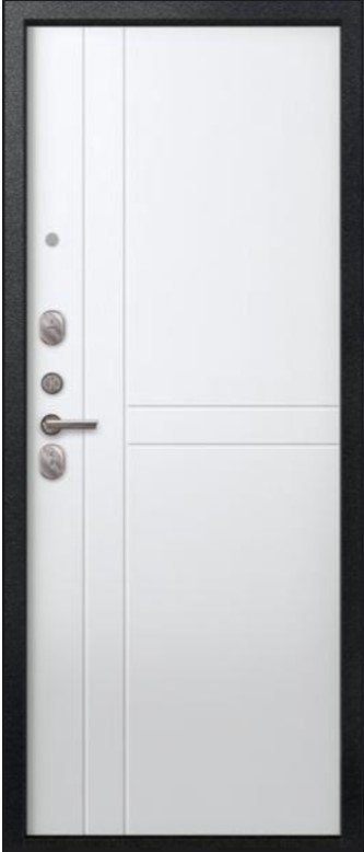 Надежная входная Дверь V-06 Черный муар - Белый премиум класса по цене 38 921 руб. Большая толщина стали защитит от проникновения в ваш дом, квартиру или коттедж. Используется очень качественная фурнитура: замки, цилиндры, ручки, защелки. Покрытие и отделка двери изготовлено под внимательным контролем производителя. Дверь имеет долгий срок службы и гарантию.