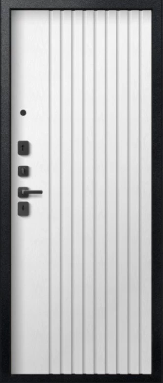 Надежная входная Дверь V-15 Черный муар + Бетон темный - Софт ясень белый премиум класса по цене 43 871 руб. Большая толщина стали защитит от проникновения в ваш дом, квартиру или коттедж. Используется очень качественная фурнитура: замки, цилиндры, ручки, защелки. Покрытие и отделка двери изготовлено под внимательным контролем производителя. Дверь имеет долгий срок службы и гарантию.